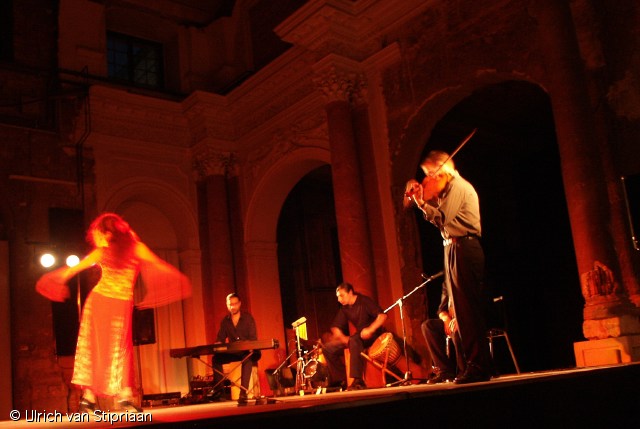 Nach ausgiebiger Probe aller vorhandenen Weine mit sachkundigen Anmerkungen durch den Sohn des Hauses, der in Worms beim Winzer lernt, ging's dann weiter zum Palais im Großen Garten. "blue y rojo" war das Motto des Abends, mit einer hinreißenden Mischung aus Jazz und Flamenco.