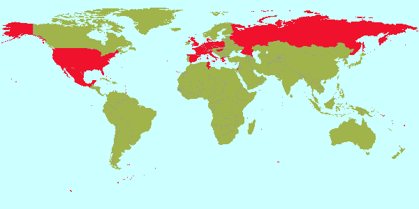 * Die Russische Föderation sowie die USA machen's natürlich fett rot: In USA waren es NY, Washington, Fredericksburg, San Francisco und San Diego, in der UdSSR (heute: Russland) Leningrad (heute: St. Petersburg) und Moskau. I visited 23 countries (10%)...