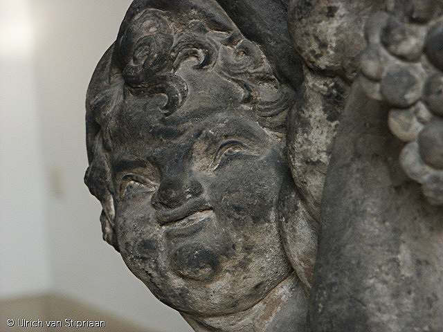 Sehen wir uns diesen zufrieden dreinblickenden Putto an. Pausbäckig (wie man das von seinesgleichen erwartet) und den Schelm um die Mundwinkel. Worauf freut er sich? Auf die Weintrauben, die vorn rechts im Bild angedeutet sind? Oder ist er einfach nur so ein fröhliches Männlein in netter Umgebung?