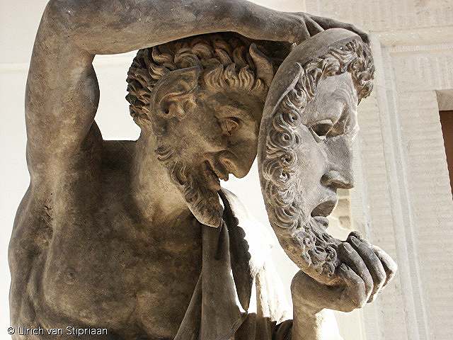 Und was ist das? Da sieht ja einer zu! Will wohl nicht erkannt werden, weswegen er sich hinter der Maske verbirgt. Aber, mal ehrlich,er scheint seinen Spaß zu haben, der alte Spanner. Feixt sich eins und freut sich des Lebens. Dabei hat er (sieht man nicht auf dem Bild, stimmt aber) einen Pferdefuß. Putto übrigens auch...