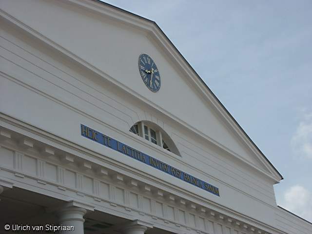 Die Zeit scheint still zu stehen in Heiligendamm - zumindest läuft die Uhr am Kurhaus (noch) nicht. Der Spruch am Giebel des Kurhauses ist lateinisch und nett: "HEIC LAETITIA INVITAT POST BALNEA SANUM" heißt "Frohsinn empfange Dich hier, entsteigst Du gesundet dem Bade". In einem Monat will hier das Kempinski Resort Hotel Heiligendamm öffnen. Unwahrscheinlich, dass die erhoffte zahlungskräftige Klientel sich hier mit Kreti und Pleti mischen wird: Drinnen wird den reichen Thalasso und Gurke aufs Auge geboten, draußen ist man lediglich am engen Strand im wahrsten Sinne des Wortes steinreich. Schnäppchenjäger aufgepasst: In den ersten vierzehn Tagen kann man für 150 Euro nächtigen, danach beginnt das Vergnügen offiziell bei 298 Euro...