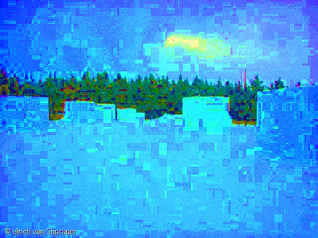 So sah es, bei leichtem Schneetreiben und 3 Grad minus, heute Mittag beim veranstaltenden Hotel Altes Zollhaus aus (links Original, rechts im GraficConverter (vgl. Diskussion hier) verfremdet.