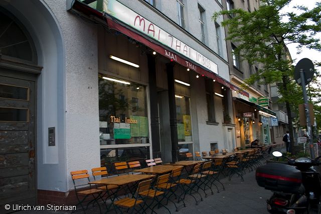 Wie gut, wenn man Berliner Begleitung dabei hat! Da findet man auch Restaurants, die man sonst nicht einmal gesucht hätte! Der Mai Thai Imbiss in Kreuzberg ist so eins (Zossener Str. 13, 10961 Berlin). Selbstbedienung! Warm drin (und zu kalt draußen)! Aber: Allerfeinste Qualität und sehr kulante Preise. Jörg, der Platzhirsch, empfahl: „Erst die Vorspeise bestellen und essen, dann das Hauptgericht. Kommt sonst zusammen!“ und „Kokosmilch sollte drin sein, dann schmeckt’s immer!“ Schön scharf, nahezu alles – und supernette „Bedienung“ (also eigentlich: Köche/Köchinnen).