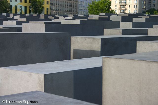 Hinten raus – und schon stehen wir vor dem von Peter Eisenman entworfenen Stelenfeld: Das Denkmal für die ermordeten Juden Europas verkommt gerade zum Happeningfeld, mit knutschenden Paaren, Fang-mich-im-Labyrinth und hüpfenden Kindern. Ob so die Auseinandersetzung mit den Gräueltaten der Nazis stattfindet?